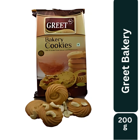 Greet Bakery presents its delightful biscuits with a cashew top, weighing 200 grams. These biscuits are carefully crafted to provide a pure and delectable taste, perfect for any time of the day.